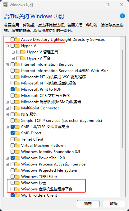 3,如果下图框选的功能有勾选的,取消勾选,点击确认,然后重启电脑即可.